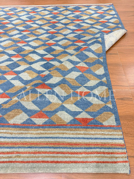 Sapphire Lattice – Hand Knotted Wool Area Rug 7x10